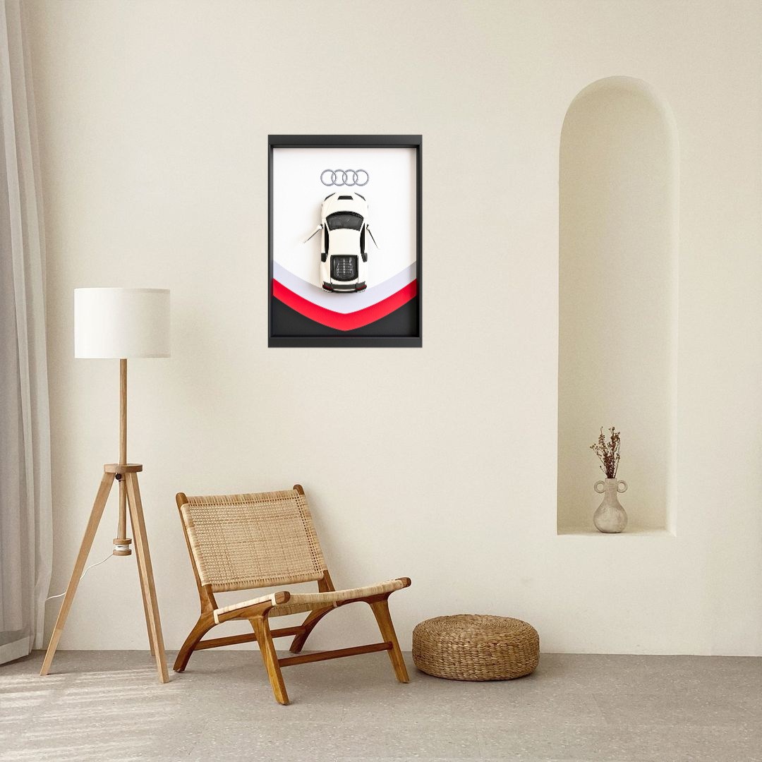Elevate your wall décor with this premium 3D Audi Diecast Car Frame – a stunning collectible for car enthusiasts and Audi lovers. Featuring a 1:43 scale model of the iconic Audi R8, this elegant frame showcases intricate detailing, including openable doors, transparent engine display, and signature Audi branding. Set against a bold tri-color background (white, grey, red), and enclosed in a sleek black frame, this piece is perfect for automotive wall art, man cave decoration, or gifting.