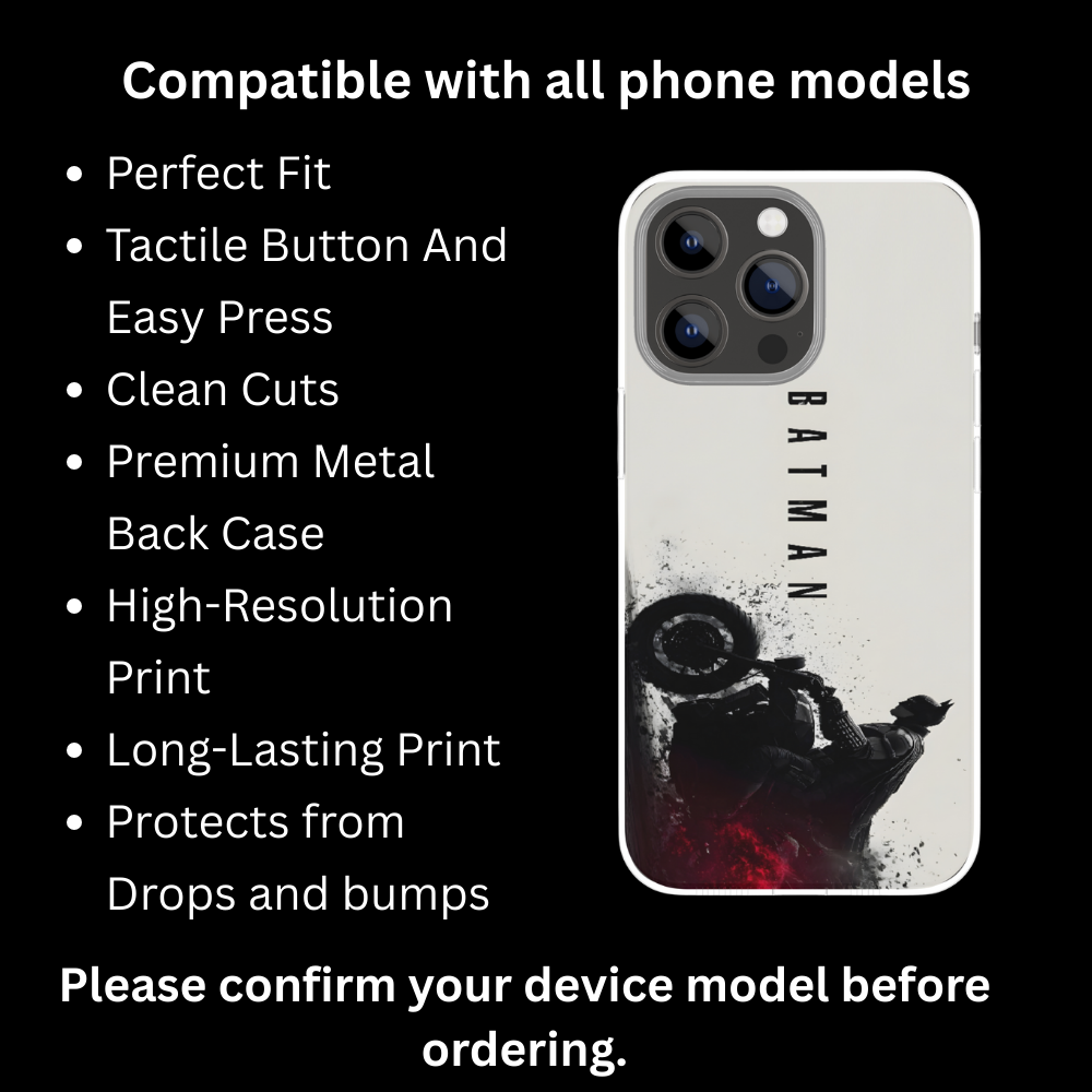 BATMAN Inspired Phone Case | Dark Knight Motorcycle Action Design | Premium Metal Back Cover | Shockproof Slim Protective Case