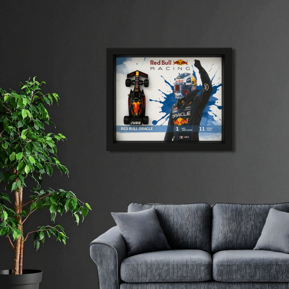 Official Red Bull Racing Edition – Premium Bburago diecast car frame inspired by the Oracle Red Bull F1 Team.