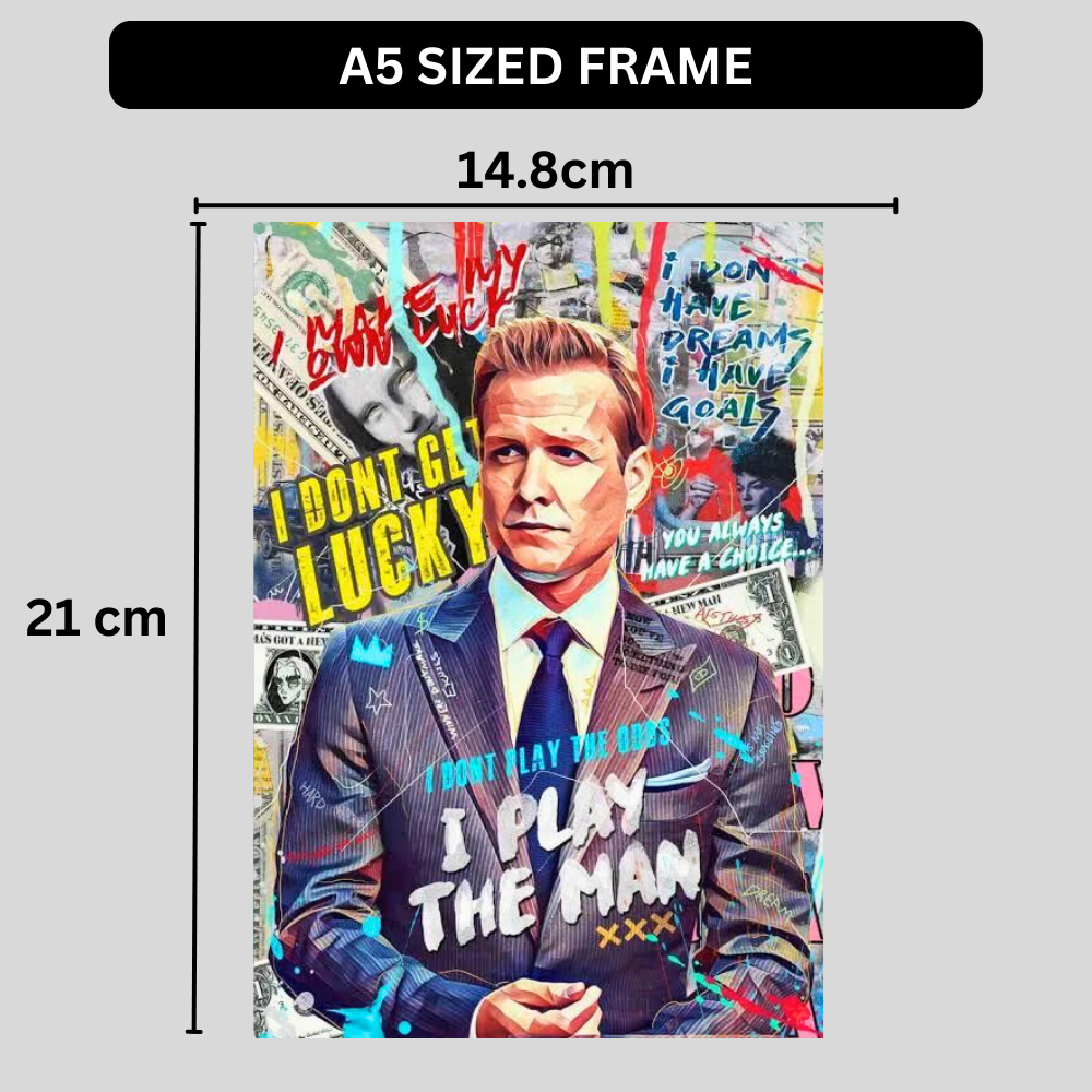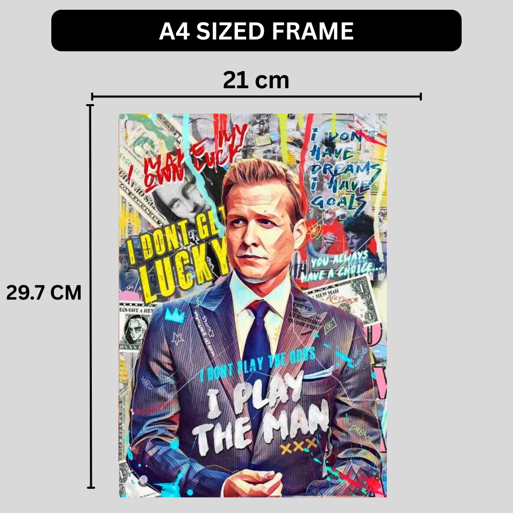 Make a bold statement with this Harvey Specter inspired motivational wall poster, designed for those who believe in confidence, strategy, and winning mindset. Featuring the powerful quote “I Don’t Play the Odds, I Play the Man”, this artwork brings authority and ambition to any space.