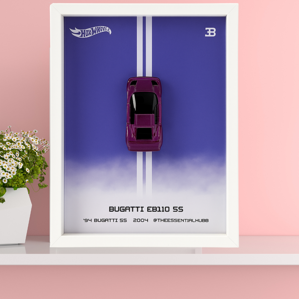 Hot Wheels Bugatti EB110 SS Car Frame 1:64 – 3D Wall Art