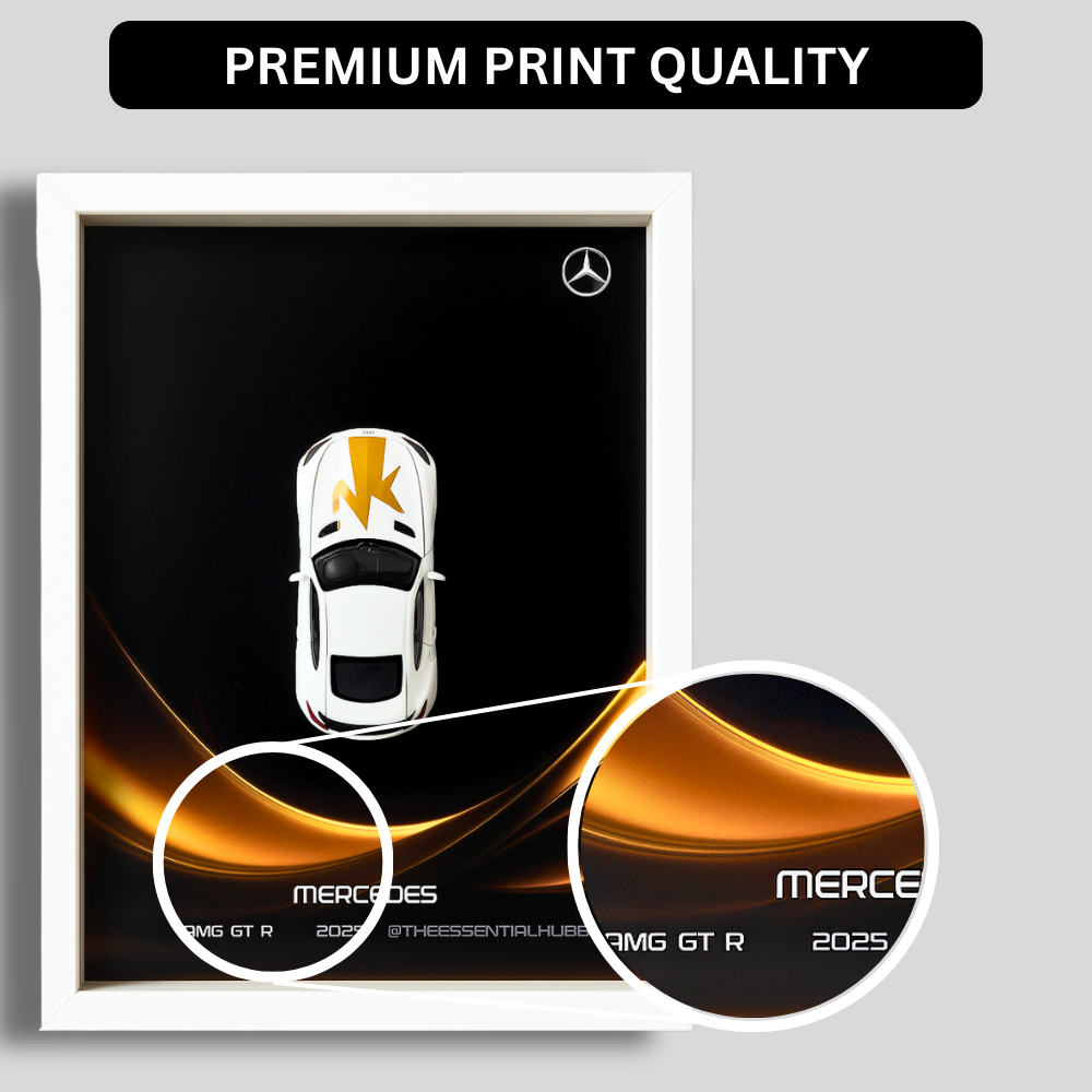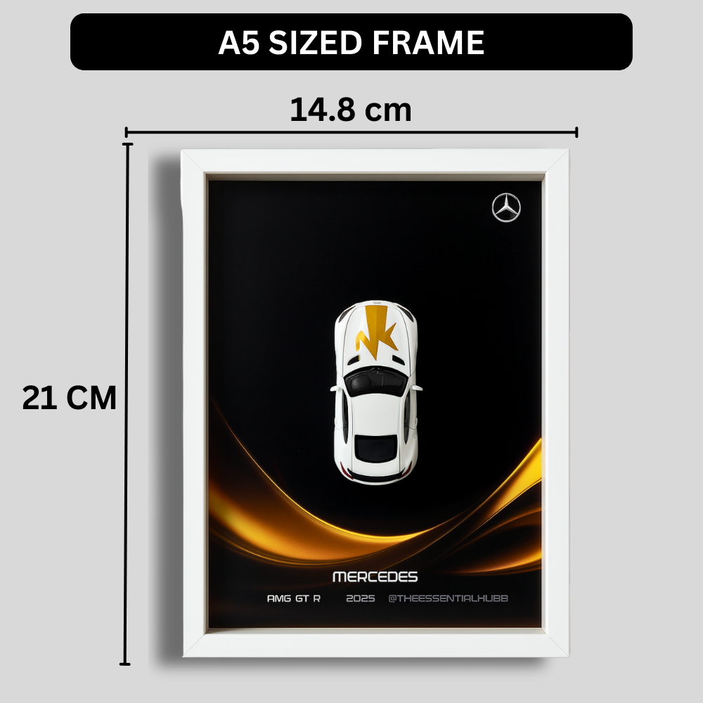 Bring the thrill of motorsport into your space with this premium Mercedes AMG GTR 3D Car Frame Display. This handcrafted collectible features the iconic Mercedes AMG GTR diecast car mounted in a sleek white frame with a custom-designed backdrop that amplifies its racing heritage.