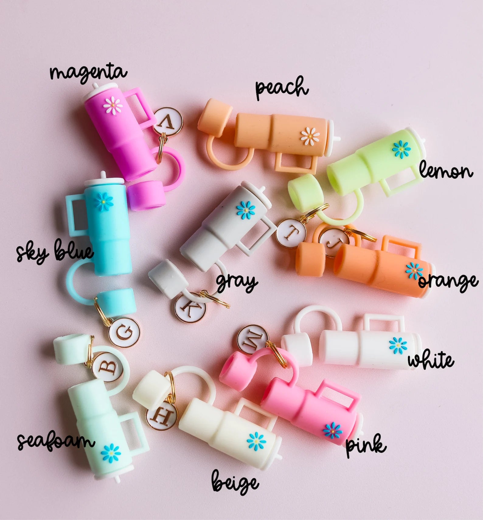 Add a splash of personality to your tumbler with these adorable mini Stanley cup straw toppers! Shaped like your favorite tumbler and featuring cute daisy accents and personalized initials, these toppers are perfect for Stanley cups, tumblers, and reusable straws.