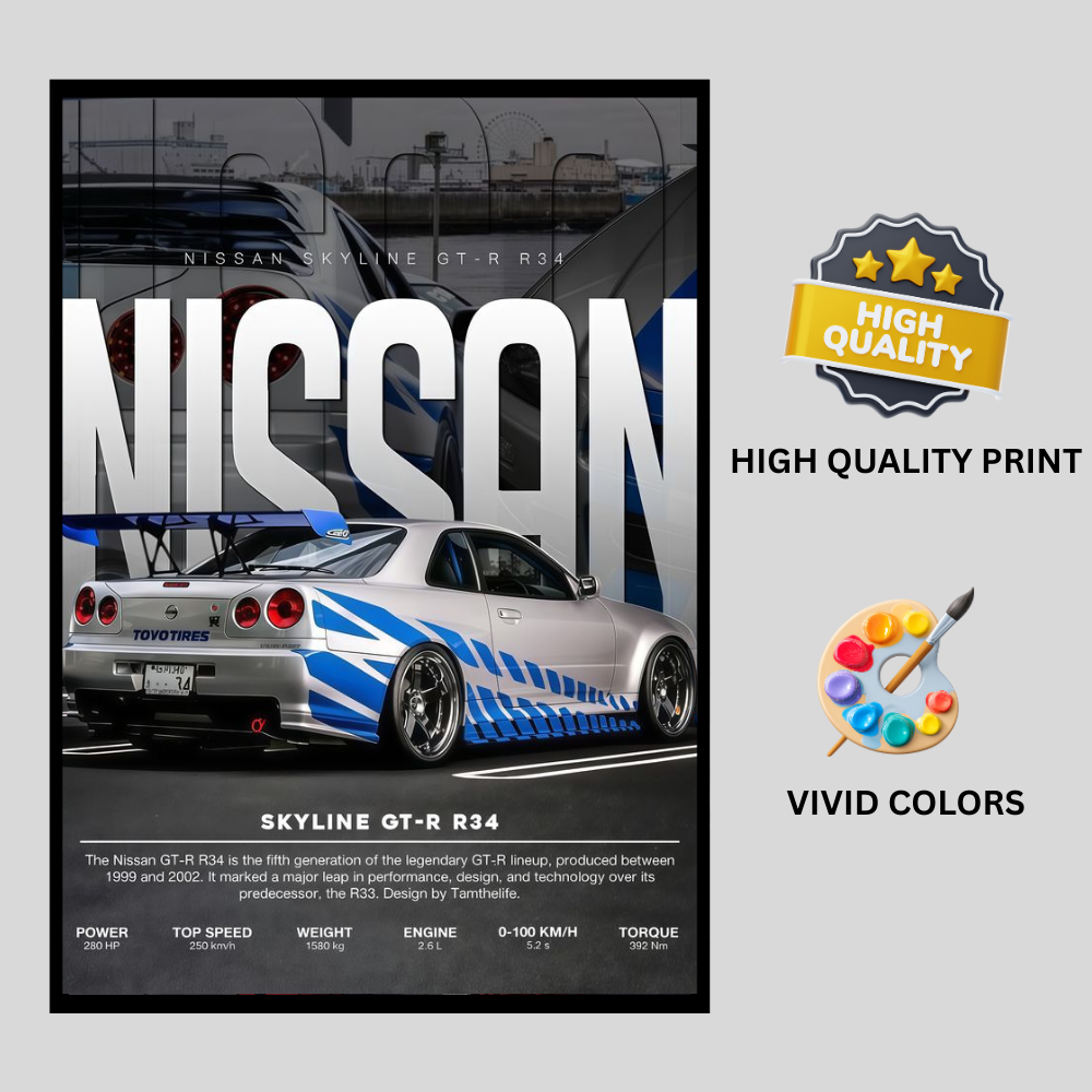 Nissan Skyline GT-R R34 Car Wall Art – Premium Automotive Decor for Car Enthusiasts