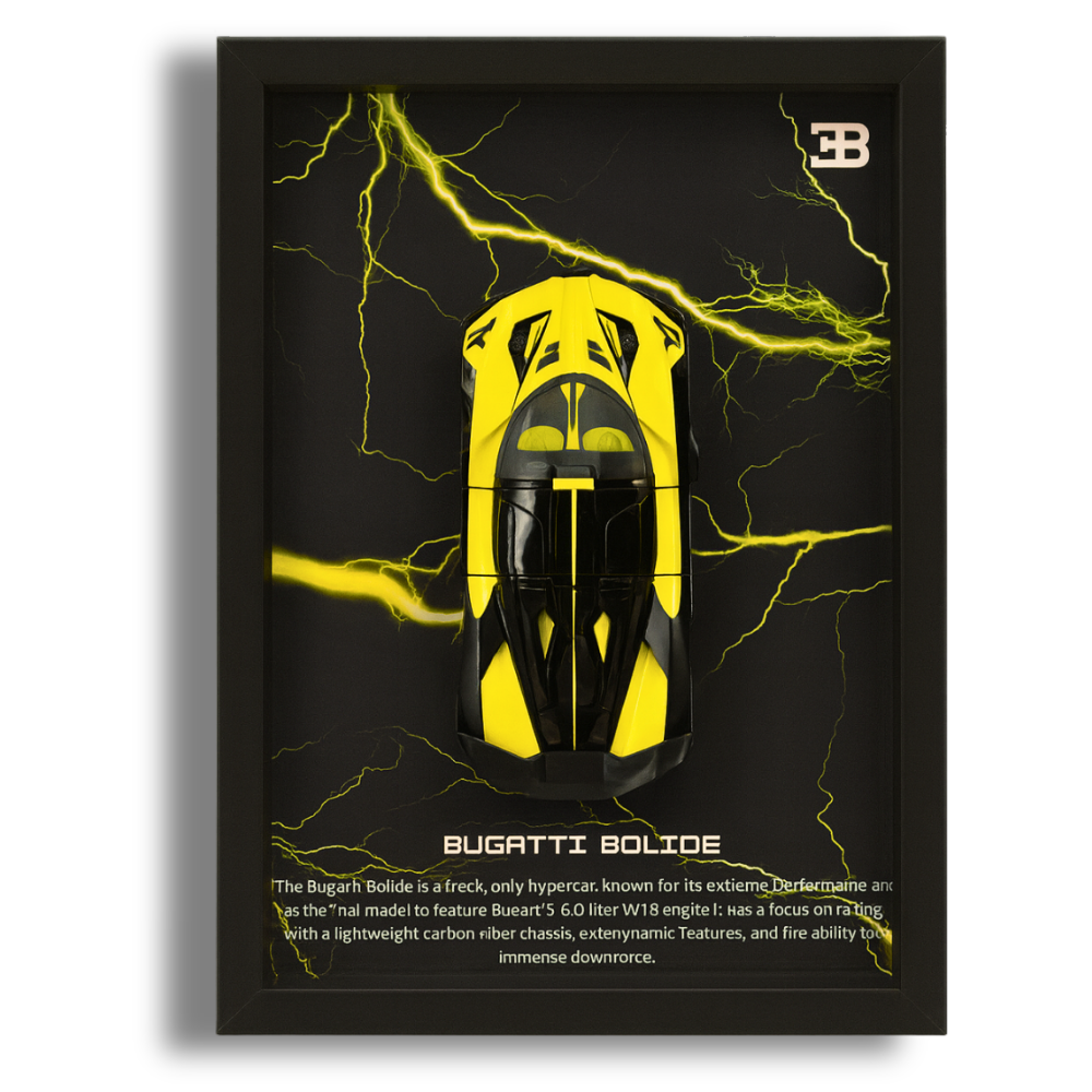 Elevate your space with this Luxury Bugatti Bolide 3D Car Frame—a rare modern collectible that blends art with high-performance design.