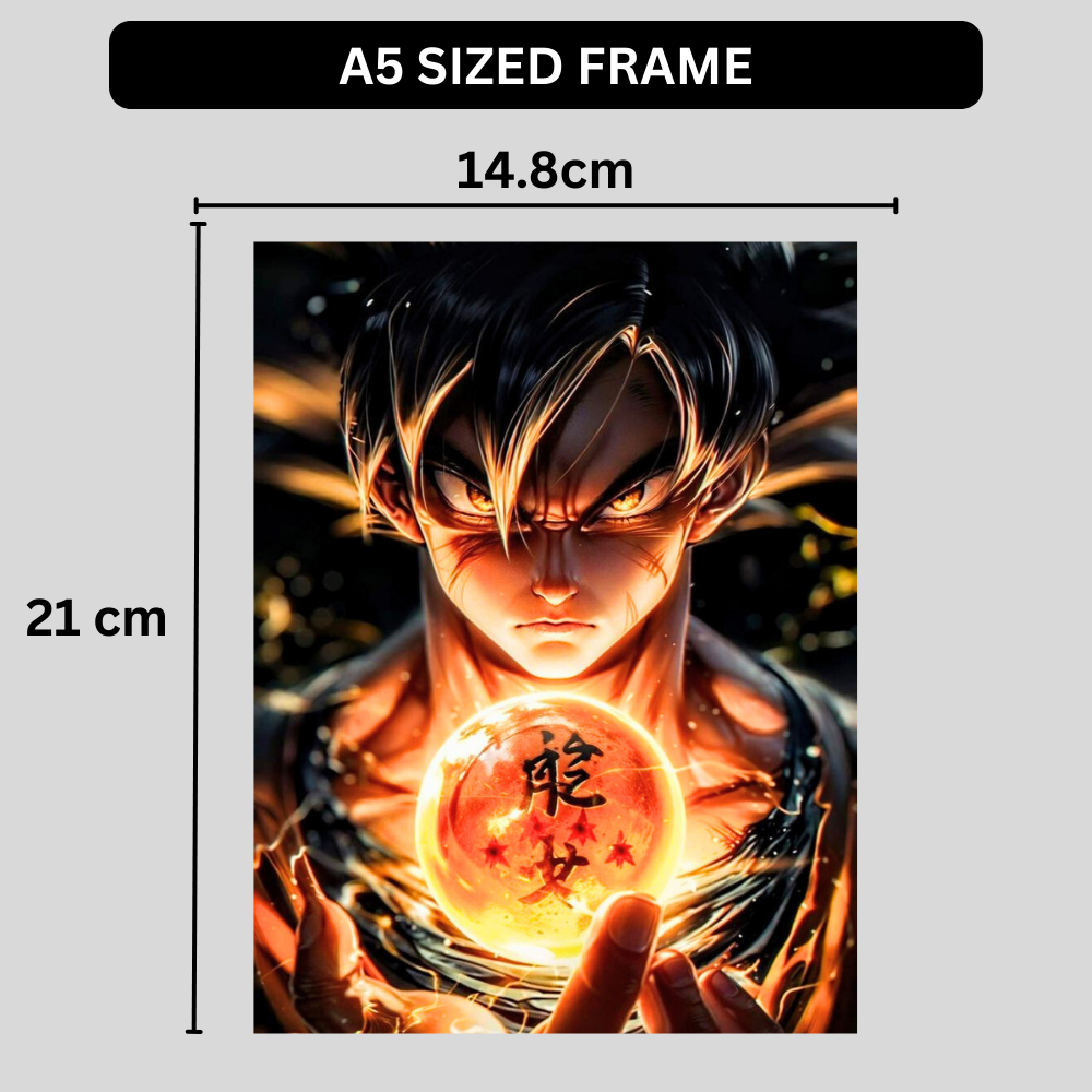 Available in A5, A4, and A3 sizes, this Son Goku poster fits a wide range of spaces. The A5 size is perfect for desks and shelves, the A4 size works well for bedrooms and study areas, while the A3 size is ideal for gaming rooms, streaming setups, and feature walls where bold anime visuals matter most.