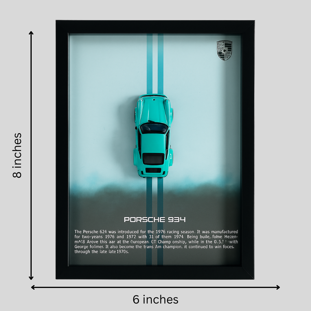 Capture the raw racing spirit of the 70s with this Porsche 934 3D Car Frame. Featuring a detailed miniature of the iconic race car, this frame is perfect for motorsport fans and collectors who admire vintage performance.